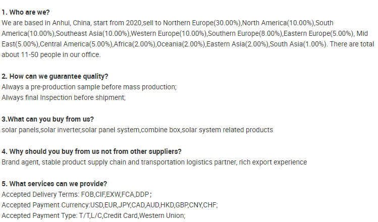 | Mounting Support | Pitched / flat roof, ground can be Customized | 1 set |