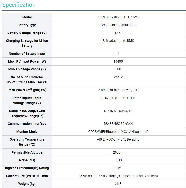 Model Number:SUN-8K-SG05LP1-EU-SM2