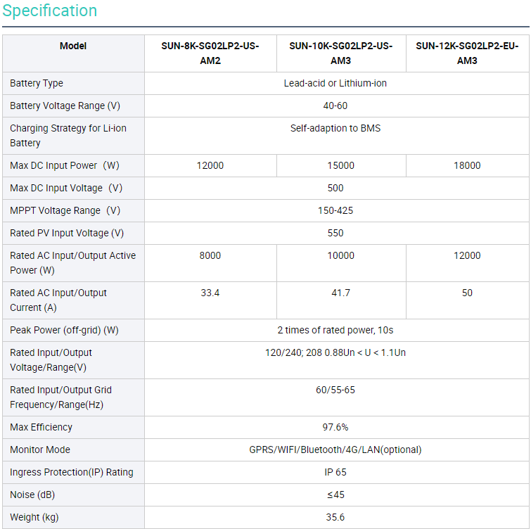 Model Number:SUN-10/12K-SG02 LP2-US-AM3